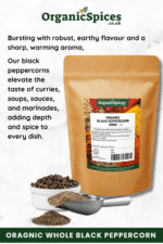 Bring depth and bold flavour to your kitchen with our Organic Whole Black Peppercorns, carefully selected for their intense aroma and strong, lingering heat. These peppercorns are grown using traditional, chemical-free farming methods and are certified organic by the Soil Association, ensuring the highest standards of purity and sustainability.