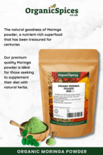 Experience the power of Organic Moringa Powder, a nutrient-rich green superfood made from the dried leaves of the Moringa oleifera tree. Sourced from organically grown crops and certified by the Soil Association in the UK, this fine green powder is packed with natural vitamins, minerals, and antioxidants.